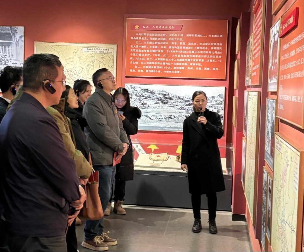 活動(dòng)在紀(jì)念館專業(yè)講解員的引領(lǐng)下,黨員們步入紅軍長(zhǎng)征柯渡紀(jì)念館,深入探尋紅軍長(zhǎng)征途經(jīng)云南的艱辛歷程與輝煌事跡。一件件革命文物、一幀幀圖像資料、一段段文字記載,這些靜態(tài)展品化作連接歷史與當(dāng)下的紐帶,既再現(xiàn)了紅軍行軍作戰(zhàn)的崢嶸歲月,更為全體黨員們堅(jiān)守初心使命提供了精神坐標(biāo)。參觀紀(jì)念館后,全體黨員在紅色廣場(chǎng)鮮艷的黨旗下,舉起右拳,在領(lǐng)誓人的帶領(lǐng)下重溫入黨誓詞。鏗鏘誓言回蕩在紅色廣場(chǎng)上空,既是對(duì)入黨初心的重溫,更是對(duì)賡續(xù)長(zhǎng)征精神、踐行初心使命的鄭重承諾。在現(xiàn)場(chǎng)教學(xué)中,黨員們集中觀看了歷史影片和講解,認(rèn)真聆聽(tīng)收看紅軍長(zhǎng)征經(jīng)過(guò)云南的歷史背景、重要事件和感人故事,深入了解那段艱苦卓絕卻充滿信仰力量的歲月,深刻感悟革命先烈堅(jiān)守初心、奮勇拼搏的精神內(nèi)核?;顒?dòng)最后,黨員結(jié)合長(zhǎng)征精神與工作實(shí)際,圍繞“大力傳承弘揚(yáng)長(zhǎng)征精神、賡續(xù)長(zhǎng)征精神”主題,開(kāi)展了交流研討。
