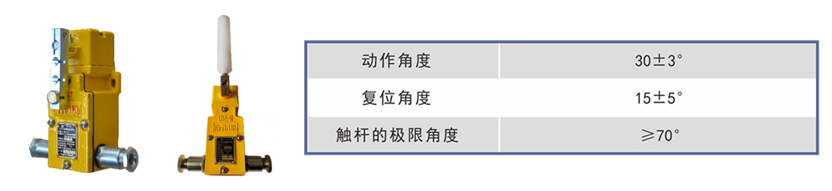 采用單級(jí)雙向跑偏開(kāi)關(guān),具有體積小、重量輕、強(qiáng)度高的特點(diǎn);觸桿外套阻燃尼龍棒,能靈活滾動(dòng)伸縮,具有耐磨、適用性強(qiáng)的特點(diǎn)。主要應(yīng)用于煤礦輔助運(yùn)輸設(shè)備