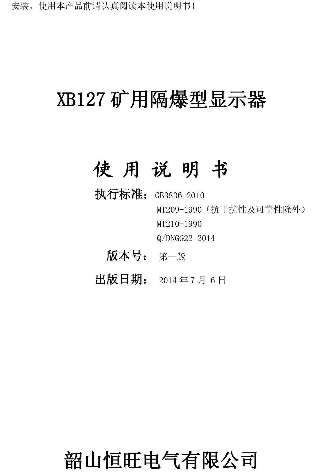 xiao12666@163.comXB127礦用隔爆型顯示器使用說明書