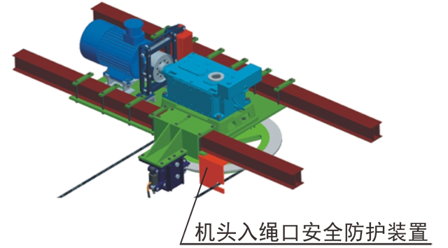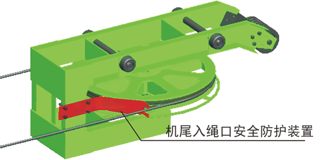 在驅(qū)動輪、迂回輪與鋼絲繩入口處,安裝了安全防護裝置,防止設(shè)備運行中有異物導入輪體而造成掉繩或人身傷害事故的發(fā)生。