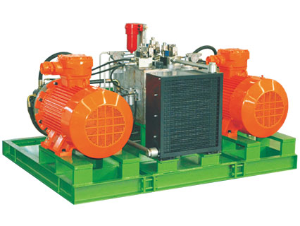 適用于大坡度、長線路、負(fù)載大的架空乘人裝置運(yùn)行。當(dāng)負(fù)載小時(shí),系統(tǒng)單動力運(yùn)行;當(dāng)負(fù)載大時(shí),系統(tǒng)雙動力運(yùn)行,達(dá)到節(jié)能的目的。根據(jù)布置方式分為臥式雙泵液壓站和立式雙泵液壓站。