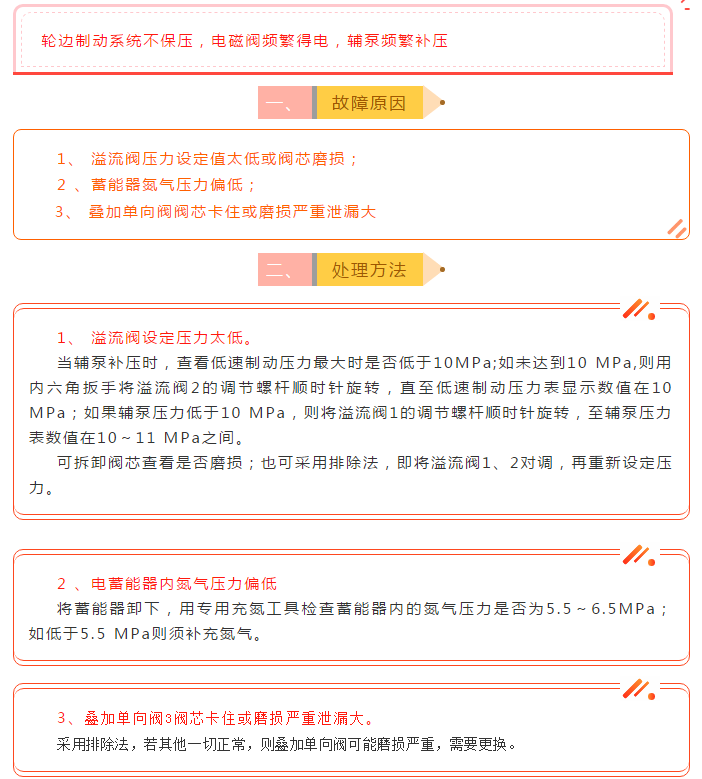 xiao12666@163.com猴車液壓故障:輪邊制動系統(tǒng)不保壓,電磁閥頻繁得電,輔泵頻繁補壓