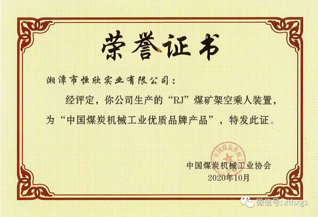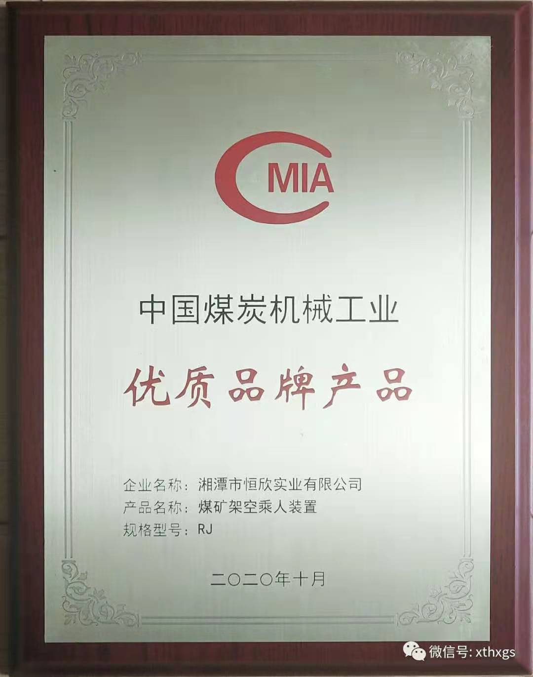 【湘潭恒欣】“猴車”產品榮獲中國煤炭機械工業(yè)優(yōu)質品牌產品