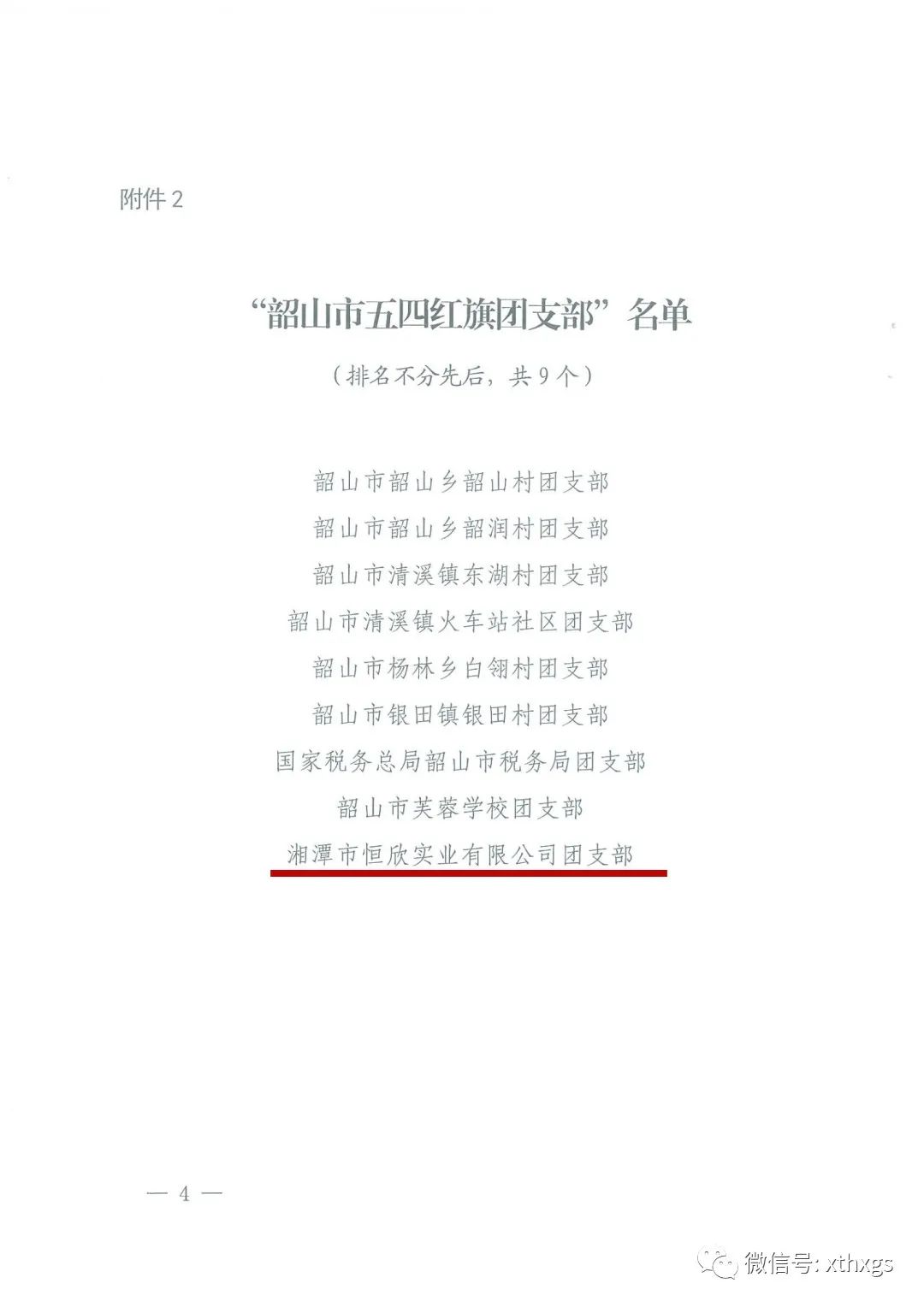 xiao12666@163.com【湘潭恒欣】喜獲湘潭市、韶山市"五四"榮譽(yù)