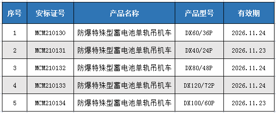 xiao12666@163.com【湘潭恒欣】再獲13個(gè)防爆柴油機(jī)單軌吊機(jī)車安標(biāo)證