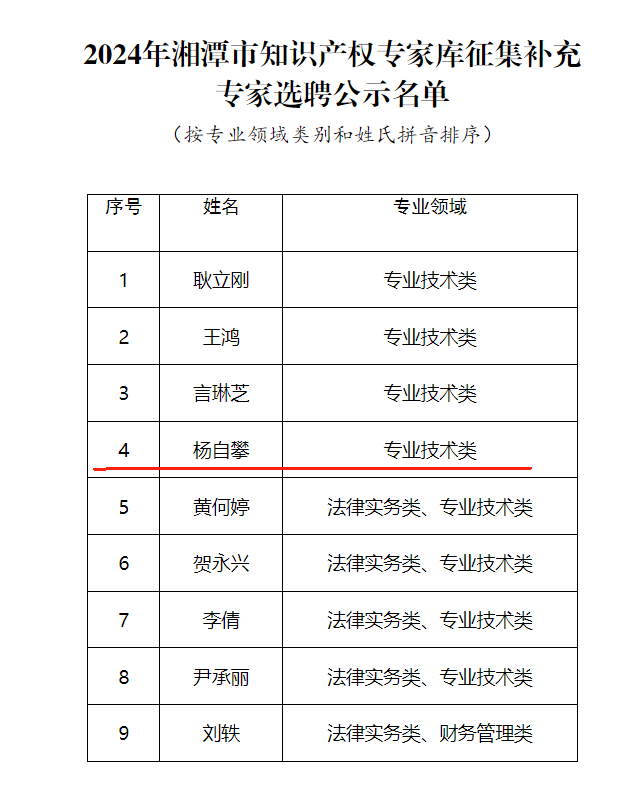 近日,湘潭市市場監(jiān)督管理局公布了湘潭市知識產權專家?guī)烀麊危?/span>經過個人報名、資格審核等程序,【恒欣股份】知識產權辦主任楊自攀憑借其在知識產權領域扎實的專業(yè)知識和豐富的經驗,成功入選湘潭市知識產權專家?guī)鞂<?/strong>。