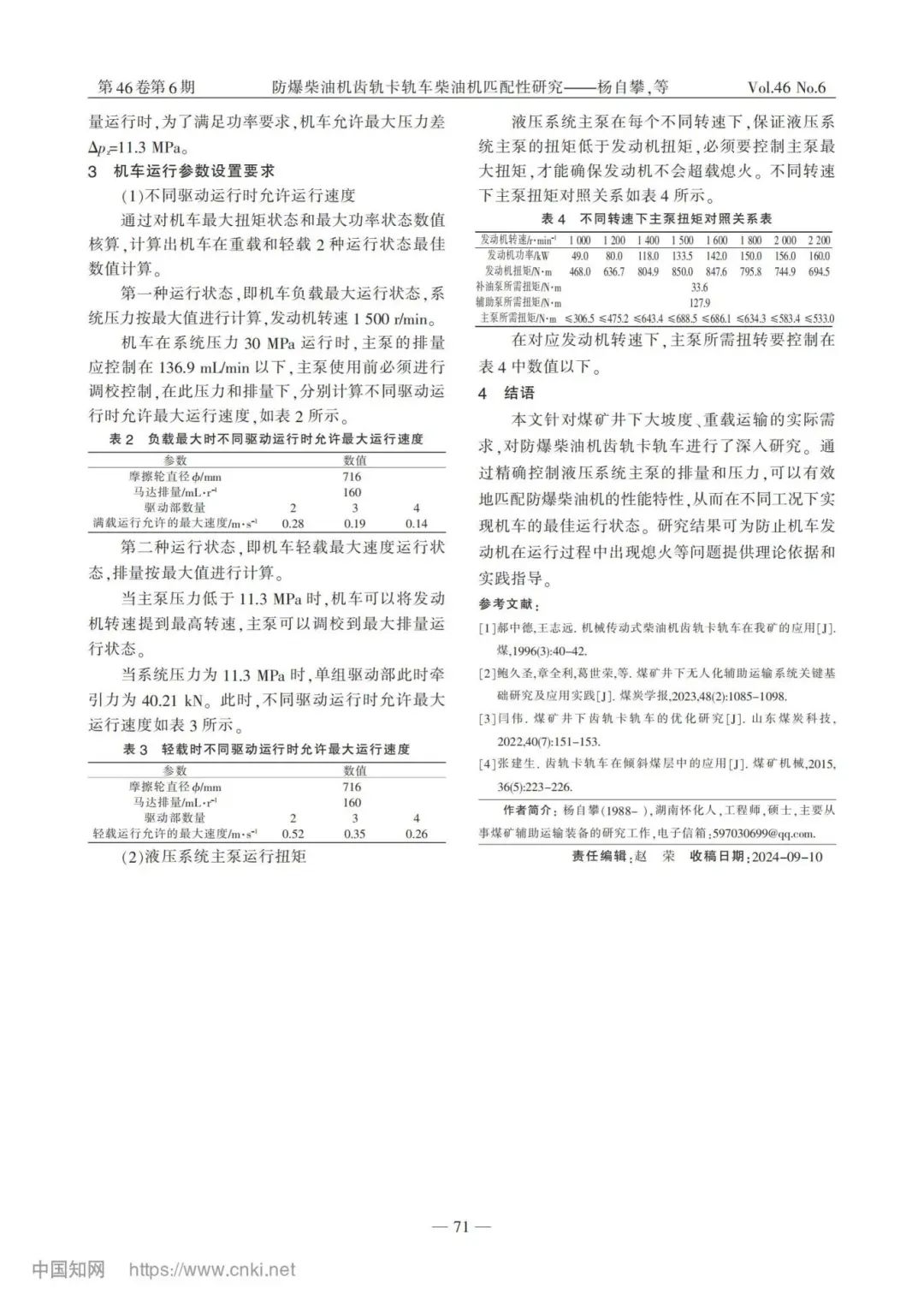 研究結(jié)果表明,通過控制不同機(jī)車型號的大負(fù)載運(yùn)行速度及主泵的最大扭矩,能夠有效避免機(jī)車在運(yùn)行過程中發(fā)生發(fā)動機(jī)熄火的情況。這項(xiàng)研究為防爆柴油機(jī)齒軌卡軌車的設(shè)計(jì)和應(yīng)用提供了理論依據(jù),同時為其在煤礦井下大坡度、重載運(yùn)輸中的實(shí)際應(yīng)用提供了技術(shù)支持和指導(dǎo)。
