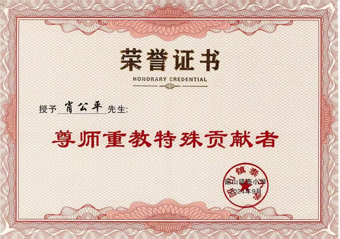 此外,肖董事長(zhǎng)繼被授予韶山市尊師重教先進(jìn)個(gè)人、鎮(zhèn)泰小學(xué)“名譽(yù)校長(zhǎng)”榮譽(yù)后,再次被授予“尊師重教特殊貢獻(xiàn)者”的榮譽(yù)稱號(hào),以表彰肖董事長(zhǎng)在支持和推動(dòng)教育事業(yè)方面的卓越貢獻(xiàn)和不懈努力。