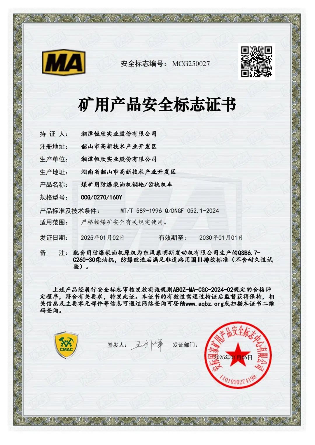 「礦用產(chǎn)品安全標(biāo)志證書」