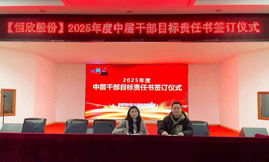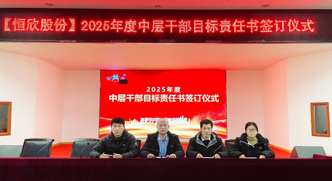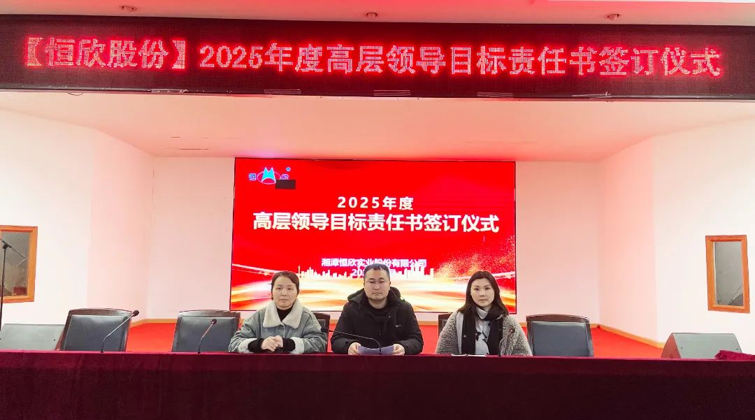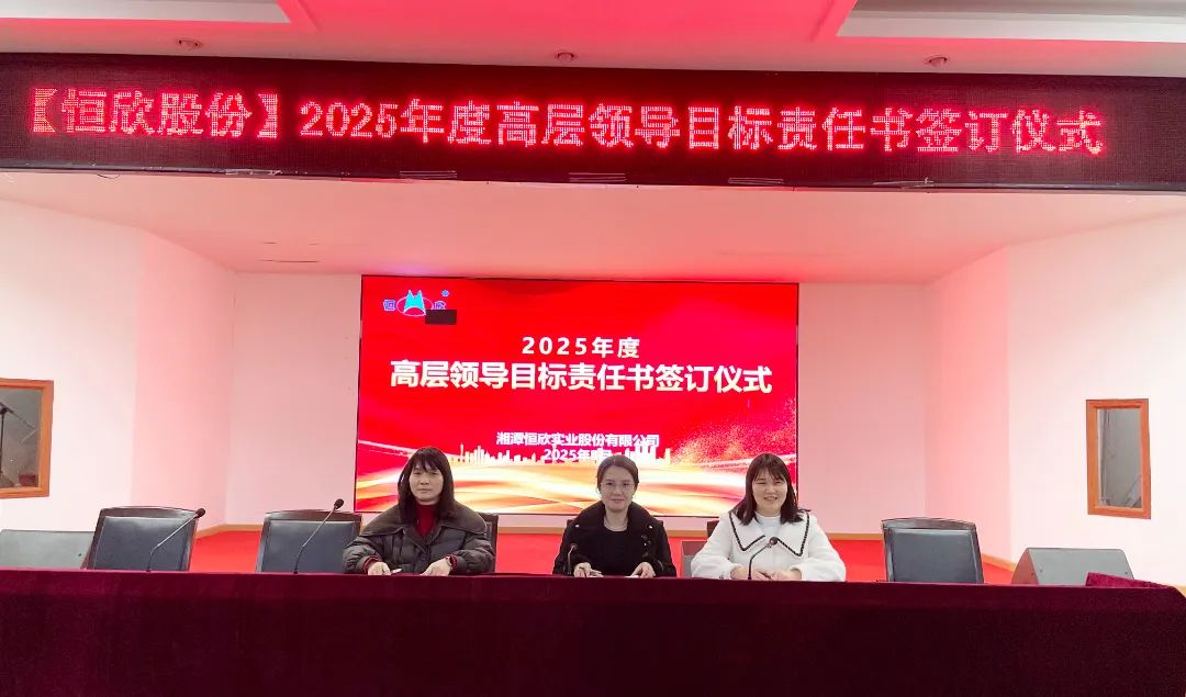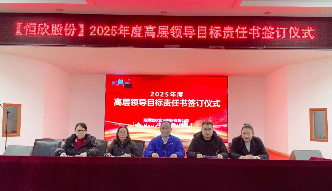 2025年3月14日,湘潭恒欣實(shí)業(yè)股份有限公司在三樓大會(huì)議室舉行中高層管理人員年度目標(biāo)責(zé)任書簽訂儀式。公司延續(xù)層級(jí)管理模式,全體中高層干部莊嚴(yán)簽署責(zé)任書,以“軍令狀”凝聚共識(shí),以“承諾書”扛起使命。