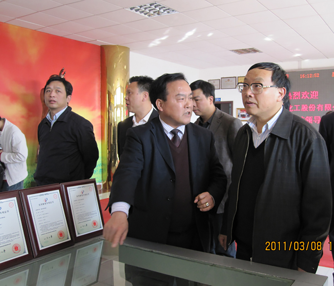 公司董事長(zhǎng)肖公平先生向省政協(xié)副主席、省委組織部常務(wù)副部長(zhǎng)武吉海先生介紹公司所取得的榮譽(yù)。