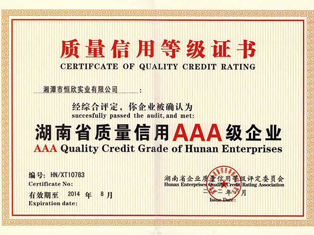 xiao12666@163.com熱烈慶祝湘潭恒欣順利通過(guò)湖南省質(zhì)量信用AAA等級(jí)認(rèn)證