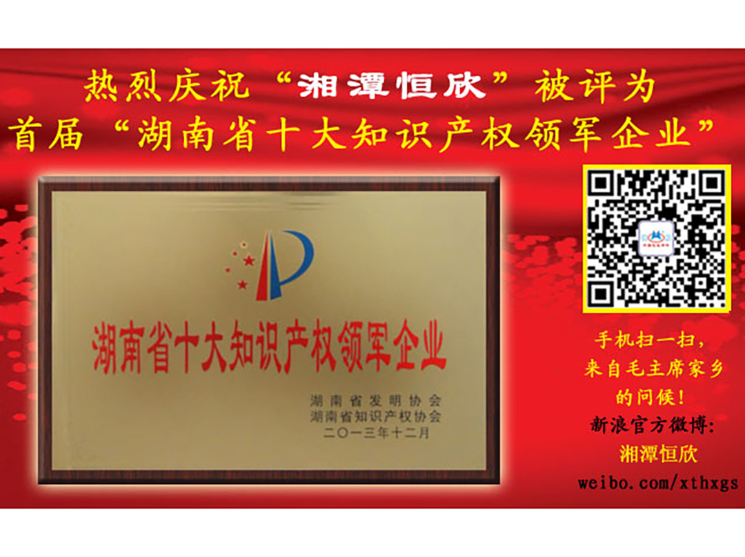 熱烈慶祝“湘潭恒欣”被評為“首屆湖南省十大知識產(chǎn)權領軍企業(yè)”
