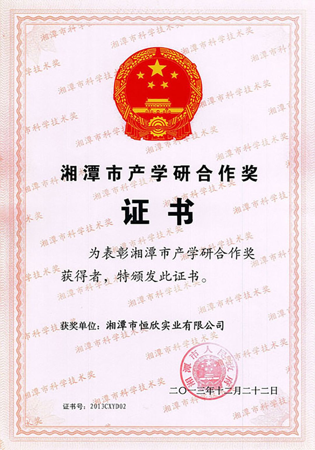 xiao12666@163.com湘潭恒欣榮獲湘潭市產(chǎn)學(xué)研合作獎