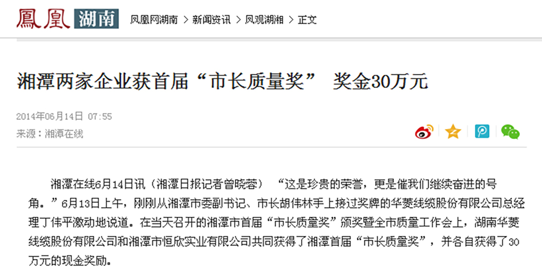 xiao12666@163.com鳳凰網(wǎng)、紅網(wǎng)隆重報(bào)道:“湘潭恒欣”榮獲湘潭市首屆“市長(zhǎng)質(zhì)量獎(jiǎng)”