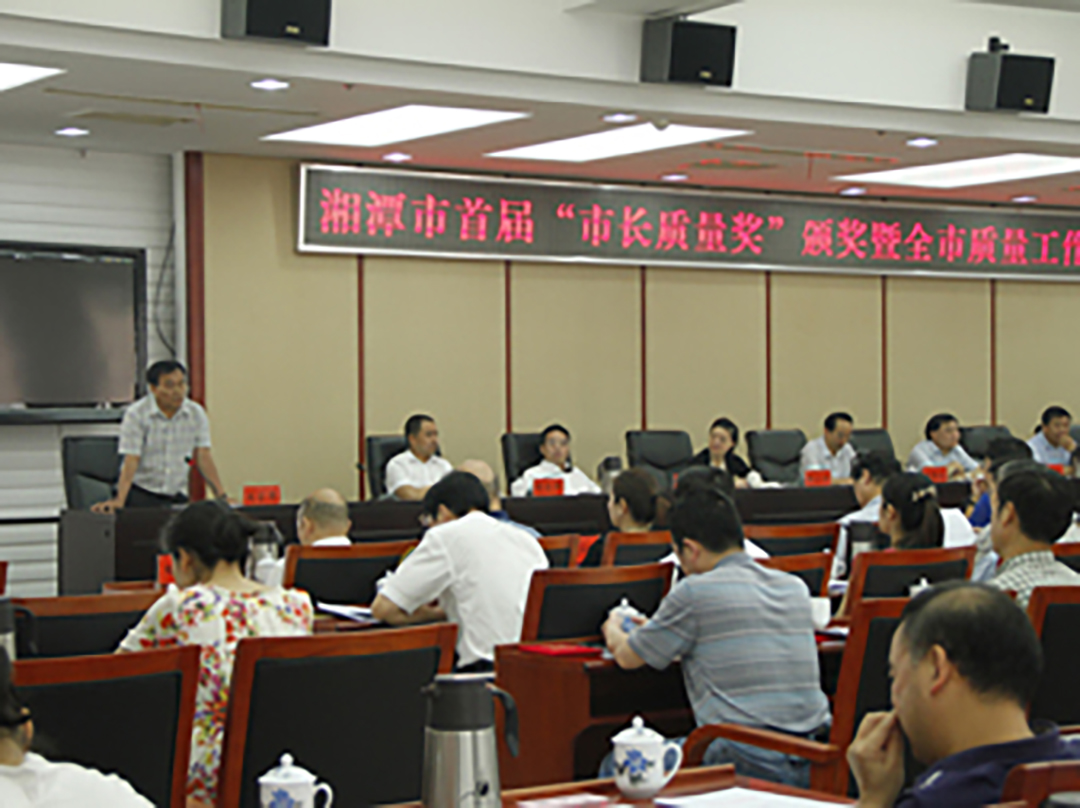 6月13日,湘潭市首屆“市長(zhǎng)質(zhì)量獎(jiǎng)”頒獎(jiǎng)暨全市質(zhì)量工作會(huì)議在湘潭市政府會(huì)議室召開(kāi),省質(zhì)量技術(shù)監(jiān)督局蔣新祺局長(zhǎng)、湘潭市委副書記、市長(zhǎng)胡偉林、副市長(zhǎng)吳小月等領(lǐng)導(dǎo)參加了會(huì)議。