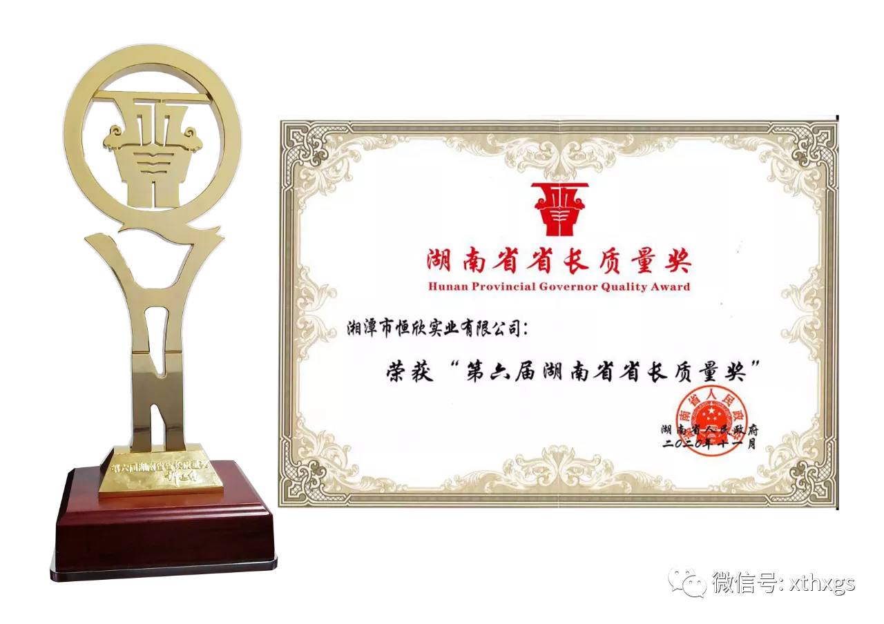省長質(zhì)量獎是通過資格審查、資料評審、現(xiàn)場評審、顧客滿意度測評等層層嚴(yán)格審核和篩選,【湘潭恒欣】憑借在經(jīng)營管理、研發(fā)創(chuàng)新、品牌打造、質(zhì)量管控、企業(yè)文化等方面取得的優(yōu)異成績,最終榮獲了第六屆“湖南省省長質(zhì)量獎”。