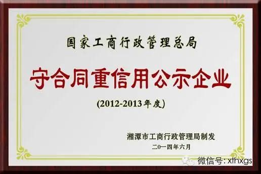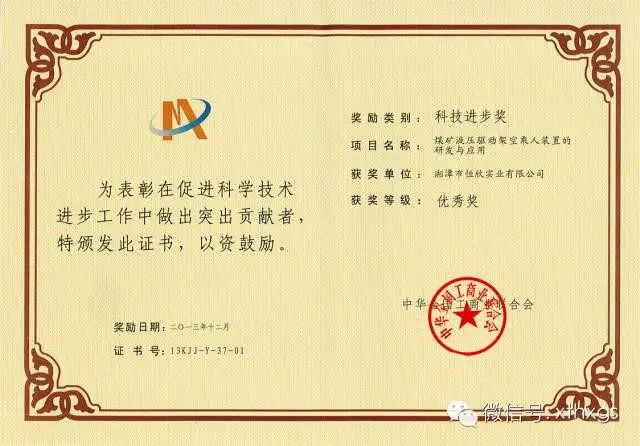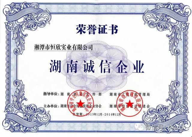 1.國家級(jí)榮譽(yù):2014年【湘潭恒欣】被評(píng)為“國家守合同重信譽(yù)公示企業(yè)”,榮獲“國家工商聯(lián)科學(xué)科技進(jìn)步獎(jiǎng)優(yōu)秀獎(jiǎng)”。2.省級(jí)榮譽(yù):2014年【湘潭恒欣】被評(píng)為“湖南省誠信企業(yè)”、“湖南省十大知識(shí)產(chǎn)權(quán)領(lǐng)軍企業(yè)”、“省認(rèn)定企業(yè)技術(shù)中心”、“2013年湖南省守合同重信譽(yù)單位”、“湖南省高新技術(shù)企業(yè)”。