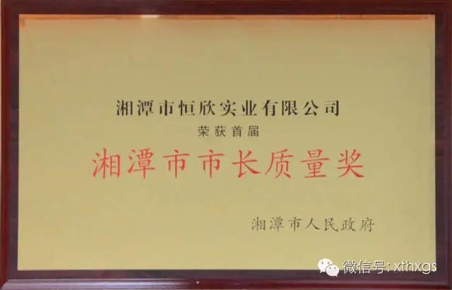 3.市級(jí)榮譽(yù):2014年【湘潭恒欣】榮獲“湘潭市首屆市長質(zhì)量獎(jiǎng)”、“全市加速推進(jìn)新型工業(yè)化二等獎(jiǎng)”。