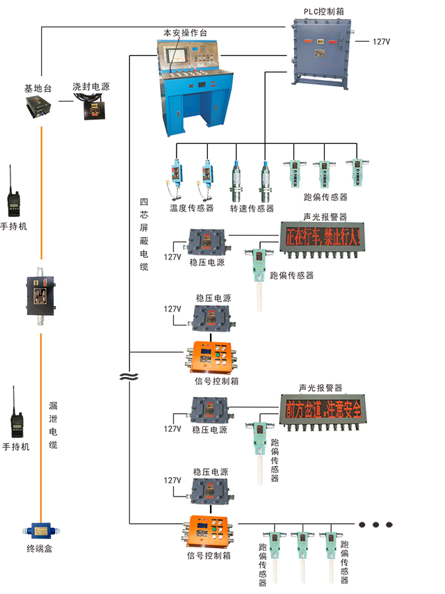 可外接漏泄通訊系統(tǒng),實現(xiàn)跟車員隨時與無極繩絞車操作員進行通話交流、打點、緊急停止無極繩絞車運行等功能。