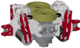 擺臂式半馬達驅(qū)動裝置由液壓半馬達 、行走輪 、摩擦輪 、制動裝置 、 左右擺臂 、 夾緊油缸等組成; 其采用擺臂支架結(jié)構(gòu) ,通過 中 間短軸連接摩擦輪 ,額定牽 引 力30KN ,設(shè)有工作制動器和安全制動器 ,制動力都為45kN