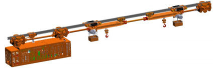 防爆柴油機(jī)調(diào)度單軌吊機(jī)車(chē)主要由驅(qū)動(dòng)部 、 柴油機(jī)主機(jī) 、速度保護(hù)小車(chē) 、承載小車(chē) 、拉桿 、起吊梁等組成。