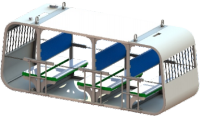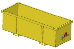 物料箱包含吊裝結(jié)構(gòu)和箱體。箱體容積可根據(jù)礦方需求定制,用于裝載描桿、矸石等小型貨物。物料箱分為底卸式結(jié)構(gòu)和側(cè)翻式結(jié)構(gòu),當(dāng)運(yùn)輸?shù)街付ㄎ恢脮r(shí),物料箱下方封板或側(cè)面可以打開,將貨物落下,從而大大減少貨物的裝卸時(shí)間。