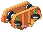 單軌吊速度保護(hù)小車設(shè)有離心限速裝置和編碼器測速裝置,安裝在電液車和柴油機(jī)車主機(jī)上方??捎糜趩诬壍醭休d、行走及導(dǎo)向,當(dāng)機(jī)車運(yùn)行速度超過設(shè)計(jì)最大運(yùn)行速度的15%時(shí),控制機(jī)車緊急制動(dòng)。
