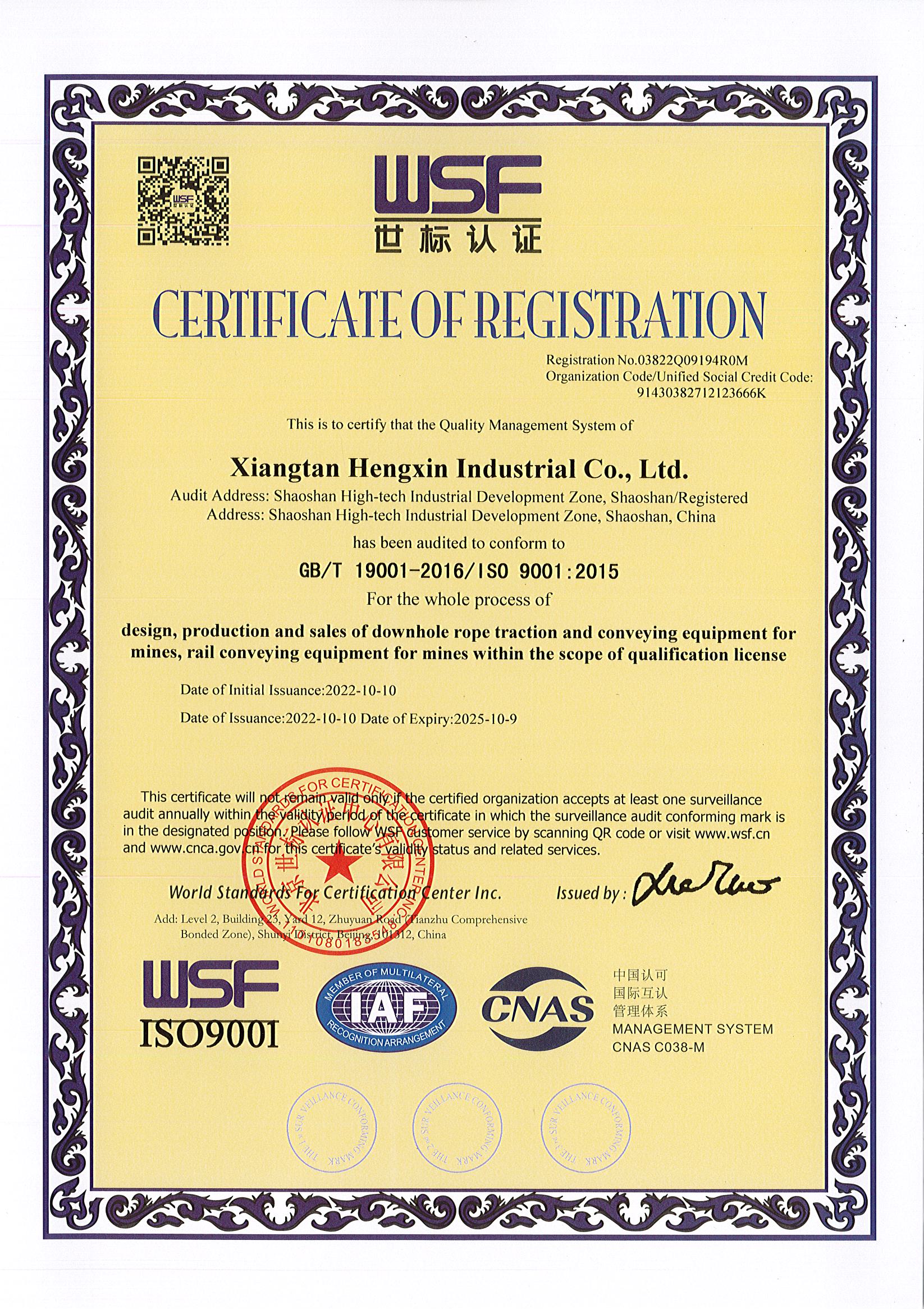 質(zhì)量管理體系認證證書(中文/英文)